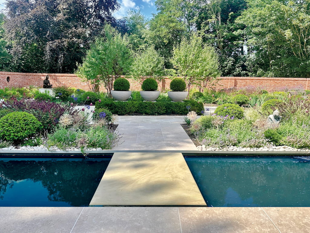Creating flow in an uneven space This large garden (6000m2) has a significant level change with a difference of 3200mm from the house to the rear boundary and the ground was heavy clay. The property is in Roydon, Essex, which is a Green Belt area, meaning the garden proposal had to be submitted with the […]