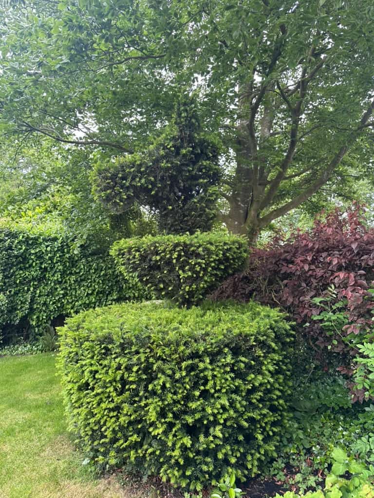 Most of the trees shown were also existing, so the design needed to work around these as well as four topiarised Taxus baccata trees. These were near the hedge boundary but of a height that made them prominent from most areas, so it was important the new layout looked to allow space for these and framed them correctly also.
